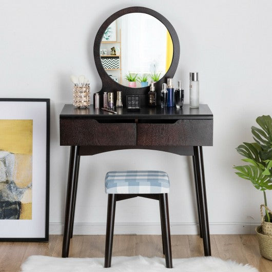 Dressing Table Vanity Makeup Set with Mirror Cushioned Stool Additional Storage-Brown
