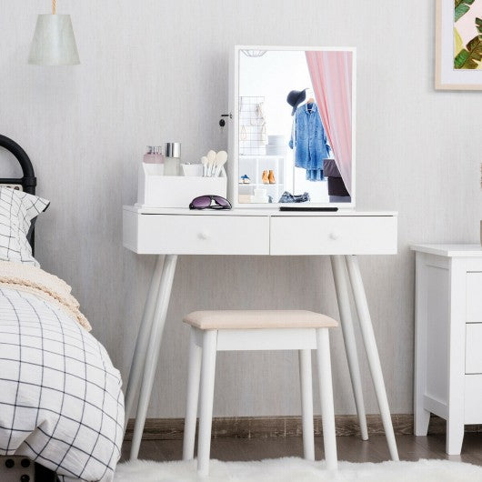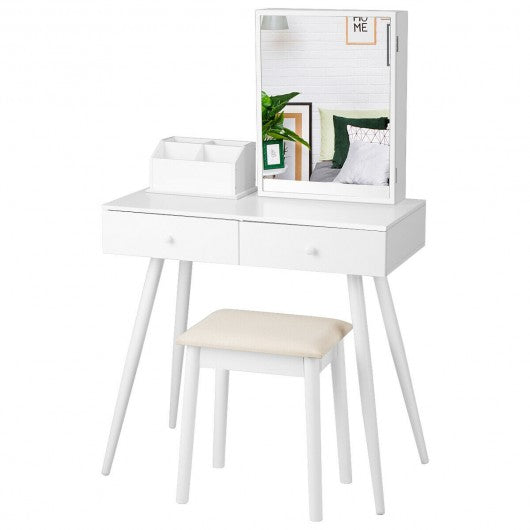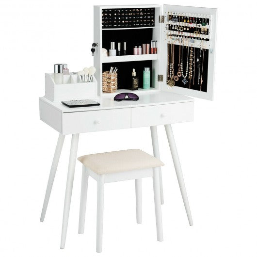 Vanity Dressing Table Set Lockable Jewelry Cabinet with Mirror-White