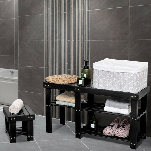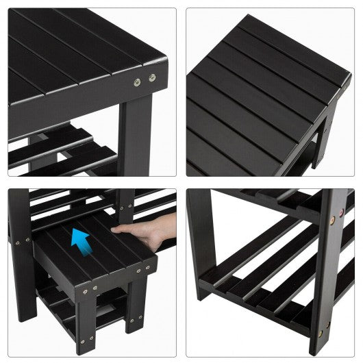 3-Tier Entryway Bamboo Shoe Rack Bench Stool Storage Organizer