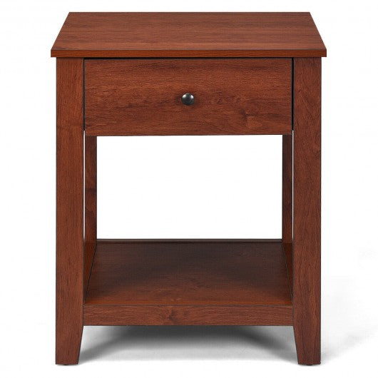 Night Stand End Side Table with Drawer and Storage Shelf
