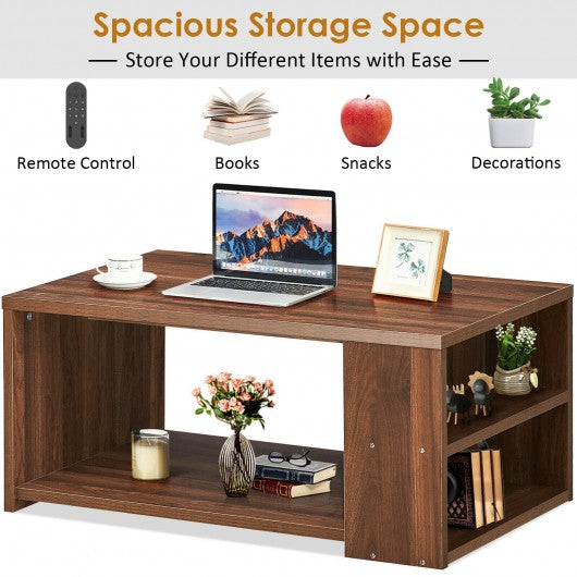 Coffee Table Sofa Side Table with Storage Shelves -Walnut
