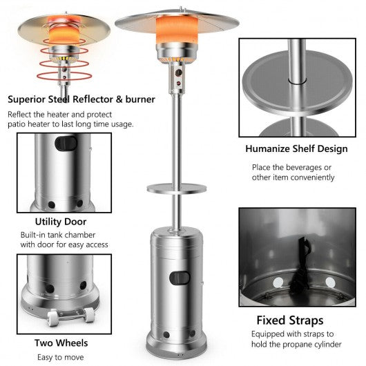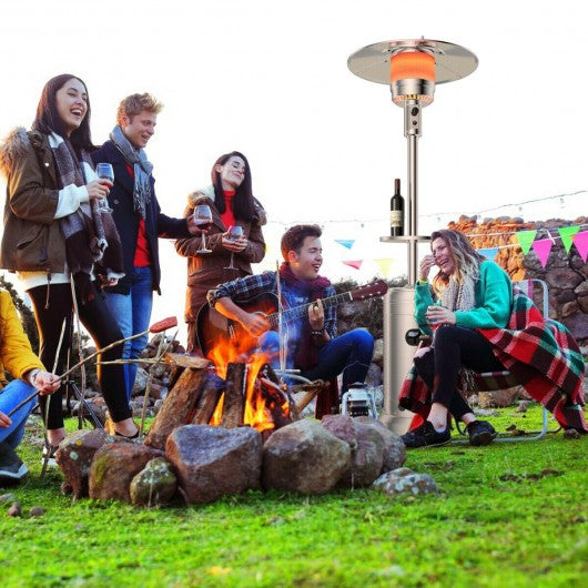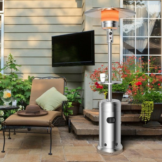 Outdoor Heater Propane Standing LP Gas Steel with Table and Wheels-Silver