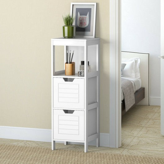 The simple and modern style of our floor cabinet can show your elegant temperament and enhance your quality of life. You can put it in the bathroom living room bedroom office and lounge. It has a total of three floors and you can hide privacy items in two drawers. Drawer handles are hollowed out which can ensure the safety of your kids. It is made of MDF board which is wear-resistant strong in load-bearing capacity and durable. The stable support legs design makes the structure stronger. The smooth surface is easy to clean and maintain. And you can assemble it in a short time. If you are looking for such a product don't hesitate to place an order! It will bring great convenience to your life and your home will be cleaner and more compact. Modern and elegant design is perfect for the bathroom living room bedroom corridor and office 3 large storage spaces can store various items and make reasonable use of the space 2 drawers can be placed freely on any two layers to meet your different needs The anti-toppling strap on the back of the cabinet for enhanced stability Drawer with groove handle for easy opening and closing Items can be placed on top of it to save space Made of MDF board it is moisture-proof wear-resistant and durable Stable and sturdy construction gives it a strong load-bearing capacity Smooth surface is easy to clean and maintain safe and not hurt your hands It can be assembled quickly according to the instructions