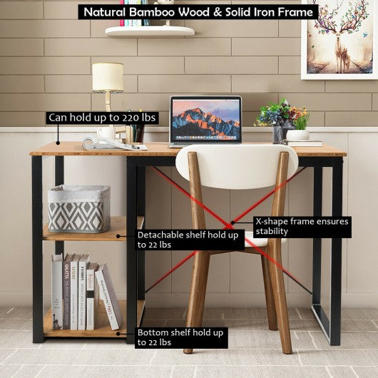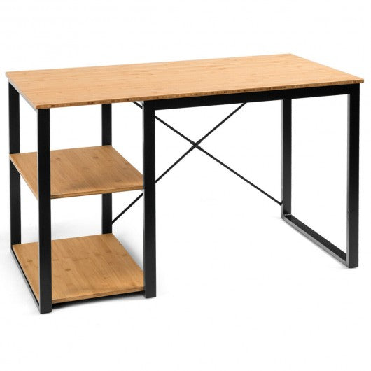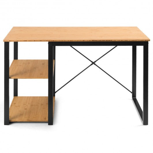 Computer Desk with Bamboo Top & 2 Storage Shelves-Natural Desk