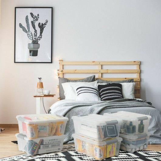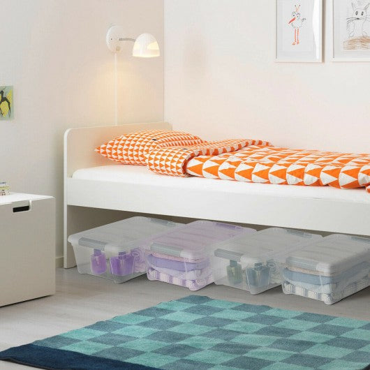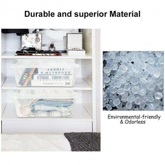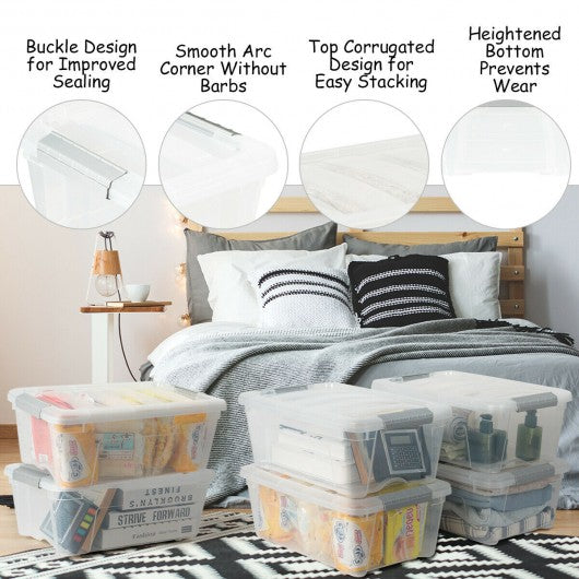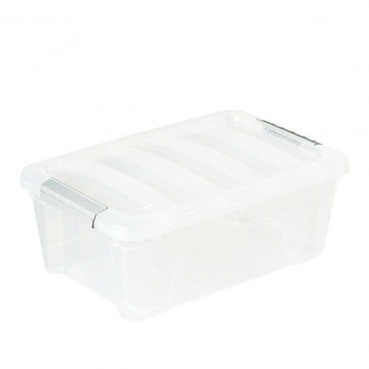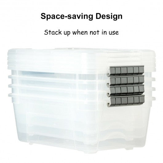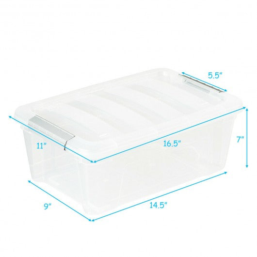 Specification: Color: transparent gray Main material: pp Overall size: 16.5" x 11" x 7" (L x W x H) Net weigh of each: 1.5 lbs Maximum capacity of each: 13 Quart Package includes: 4 x Buckle up plastic stackable storage