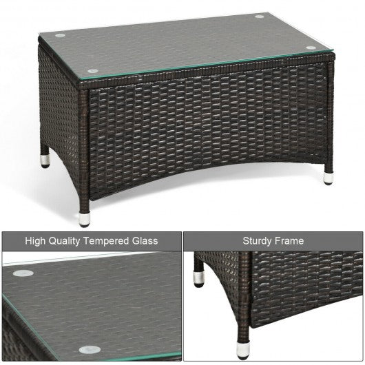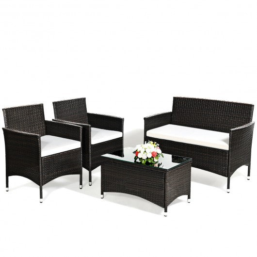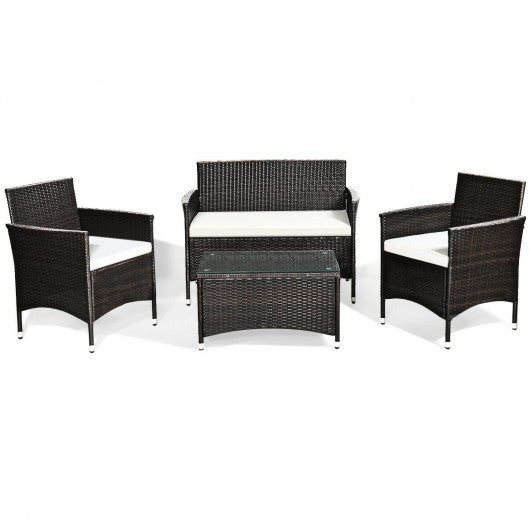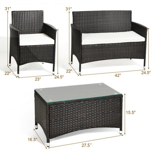4 pcs Patio Garden Rattan Furniture Set Coffee Table Cushioned Sofa