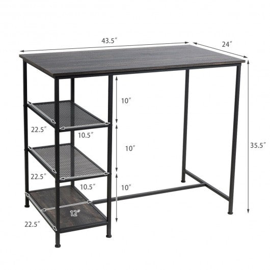 This bar table provides a great solution to maximize space utilization for people with limited space but need more storage places. Made from safety-painted iron pipes and high-quality engineered wood this bar table is sturdy and durable for long time use. The 4 non-slip mats increase the stability of the table and protect the floor from scratches to a certain extent. The 3 storage shelves on the side are easy to place frequently used magazines cups spoons etc. This multifunctional bar table is especially designed for the home kitchen dining room and bistro and another occasion. It can be used as a computer desk home desk writing desk or office desk. If you are looking for the bar table don't hesitate to buy it now! Heavy-duty iron frame with safe paint is very sturdy and rust-proof to use longer Non-slip pads at the bottom to increase the stability and protect the floor 3 open shelves to satisfy storage needs Widely used as a bar table dining table computer table Modern design makes it perfectly blend with the surrounding decorations Play as an excellent space-saver to take up less space Large leg rooms to conveniently store the stool when not using Wire-made shelves will not accumulate too much dust for easier cleaning Easy to assemble and clean