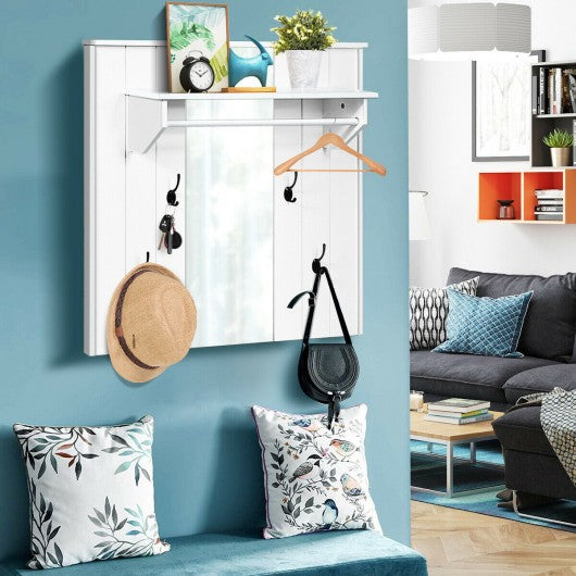 Wall Mounted Mirror Coat Hat Rack Storage Shelf