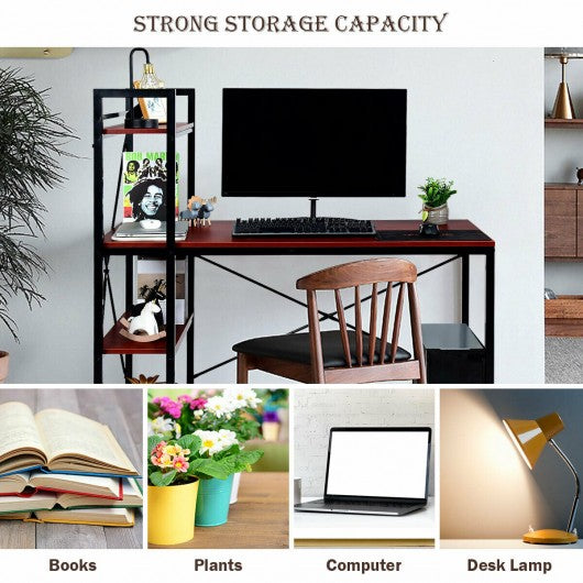 47.5" Writing Study Computer Desk with 4-Tier Shelves-Coffee
