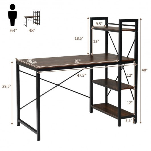 47.5" Writing Study Computer Desk with 4-Tier Shelves-Tan