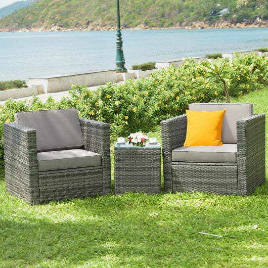 3 Pcs Patio Garden Rattan Furniture Sofa Cushioned Coffee Table Set