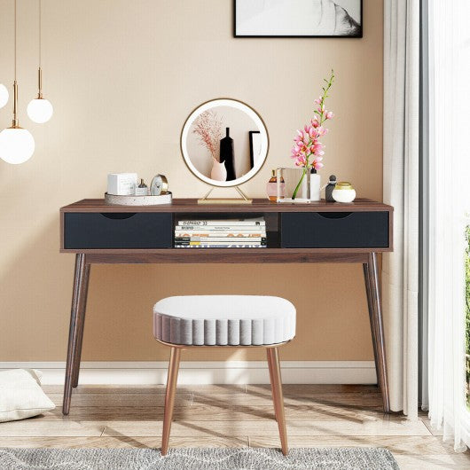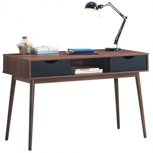 The natural mid-century writing desk will be the perfect solution to the limited apartments for its compact and space-saving design. Wide desktop provides spacious surfaces for many items from the lamp and decorative plants to computers and magazines. Practical drawers with grooved handles ensure overall streamlined appearance and create sufficient classified storage space at the same time. Open drawer in between inconvenient for taking in and out supplies directly. Thickened splayed legs keep the writing desk as stable as possible. Furthermore the writing desk adopts durable as well as safe engineered wood which can not only offer longer service time but also ensure great reliability for your frequent daily usage. If you are looking for a desk don't hesitate to buy it now! Include 2 closed drawers and 1 open drawer for classified storage The grooved handle is convenient for pushing and pulling Proper and ergonomic height avoid discomfort caused by high or low desk Wide desktop allow you to write read work and play games Crafted with engineered wood the desk is durable to serve you for a long time Safe material reliable and family-friendly Splayed legs keep the desk steadily provide convenience for floor cleaning Sturdy enough to withstand a maximum capacity of 55 lbs Suitable for living room bedroom study home office Space-saving design perfect for limited apartment