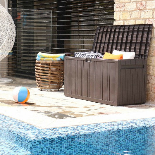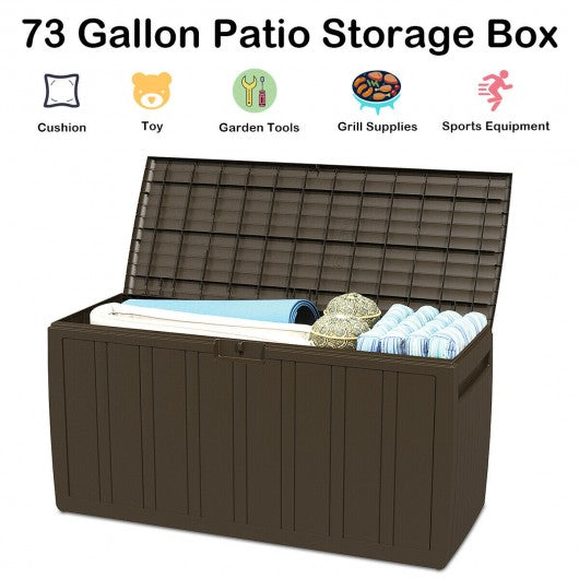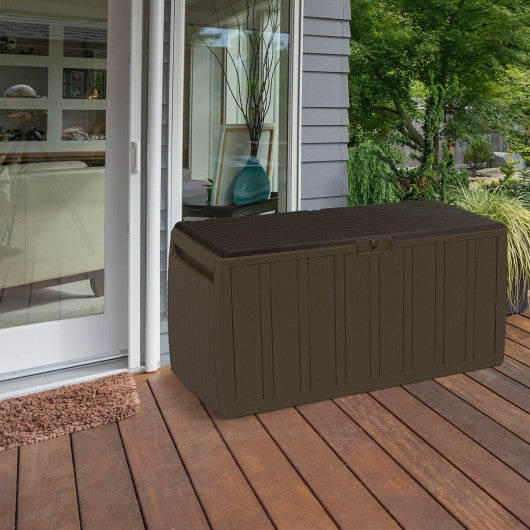80 Gallon Plastic Deck Storage Box Tool Box Patio Storage Container-Brown