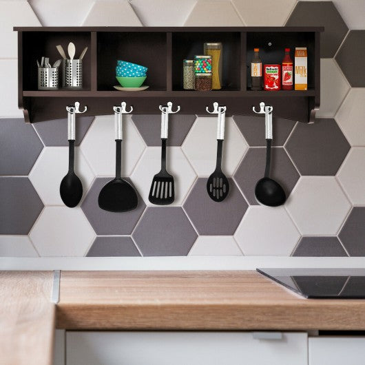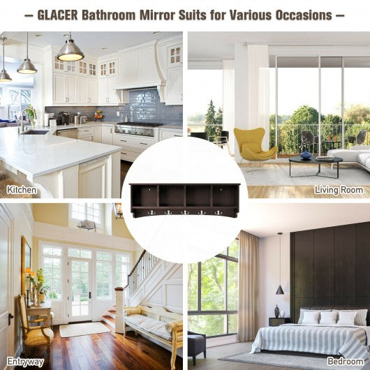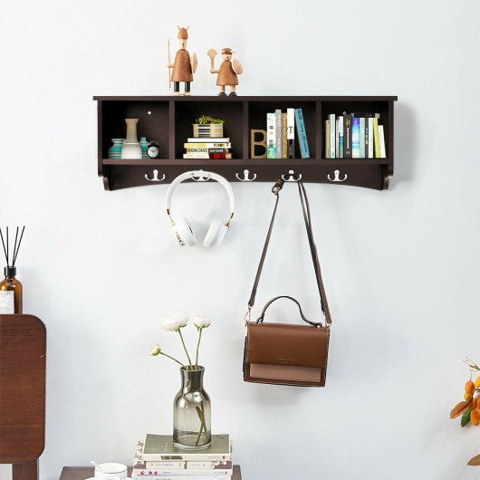 Hanging Entryway Shelf Coat Rack Wall Mounted Storage Cabinets-Brown