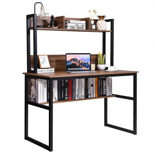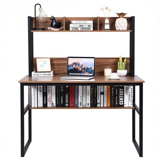 Storage Writing Desk Computer Desk with Hutch & Bookshelf-Walnut
