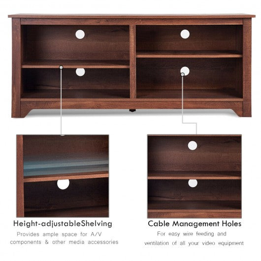 This is modern TV stand which brings a dramatic contemporary styling to your home with its elegant finish. The top can support TVs up to 60 inches and the adjustable shelves help you storage necessary media or gaming devices. This TV stand is a piece of furniture for your home. With a clean edged top rectangular legs the distinctive TV stand creates a warm and charming atmosphere for your home or office. This TV stand is designed to blend into a variety of living and family room settings. With its casual contemporary style this exquisite collection is a relaxed look that fits anywhere. If you are looking for a beautiful TV stand just buy this one now! Brand new and high quality Simple and elegant design Accommodates flat panel TVs up to 60" Constructed with MDF durable and sturdy Adjustable shelving with ample storage space Cable management holes maintain a clean space Perfect to fit your living room or bedroom Ships ready to build with step-by-step instructions