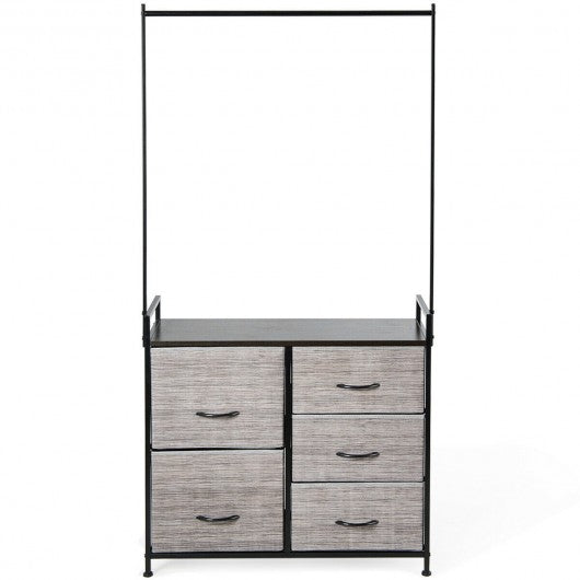 5 Drawers Fabric Dresser with Hanger Metal Top Storage Closet Organizer