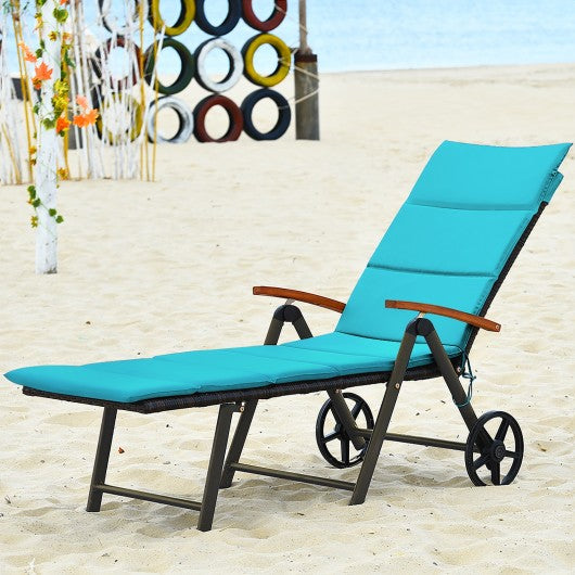 Outdoor Chaise Lounge Chair Rattan Lounger Recliner Chair-Turquoise