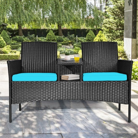 Patio Rattan Conversation Set Seat Sofa-Turquoise
