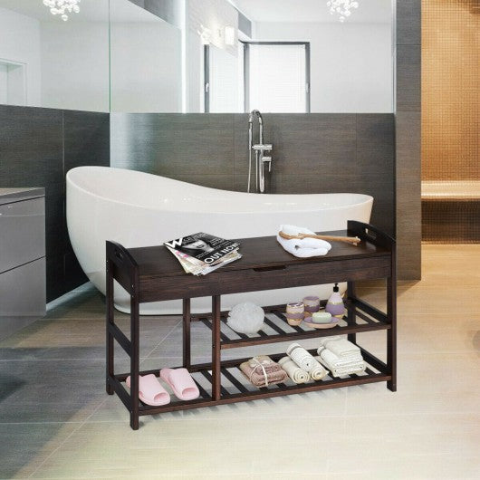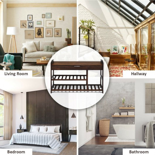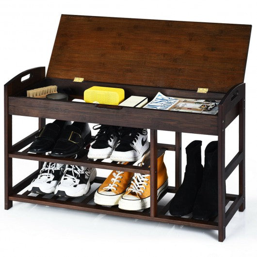3-Tier Bamboo Shoe Bench Entryway Storage Rack-Black