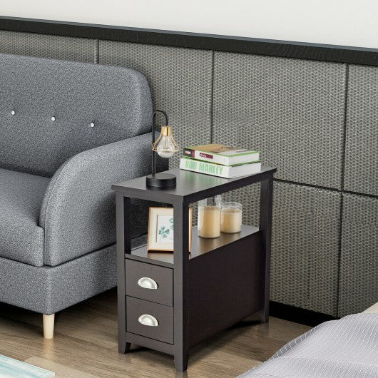 End Table Wooden with 2 Drawers and Shelf Bedside Table-Espresso