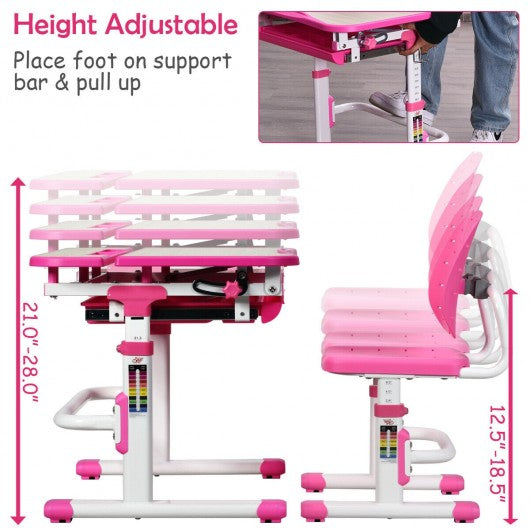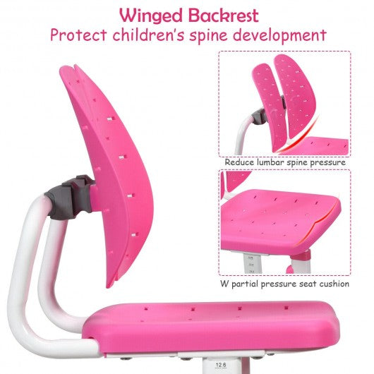 Height Adjustable Kids Study Desk and Chair Set-Pink