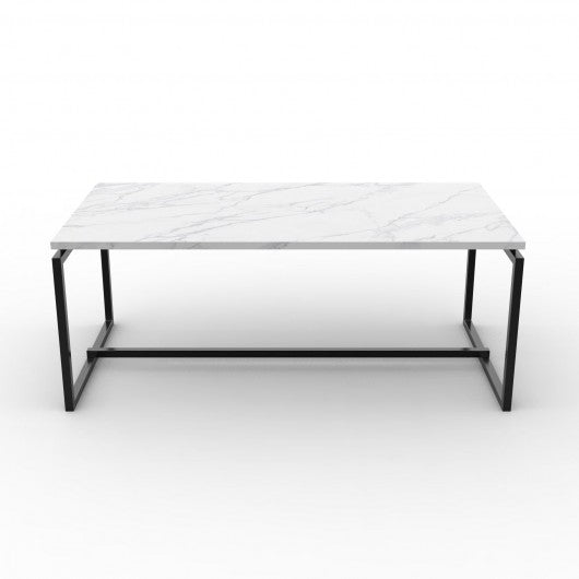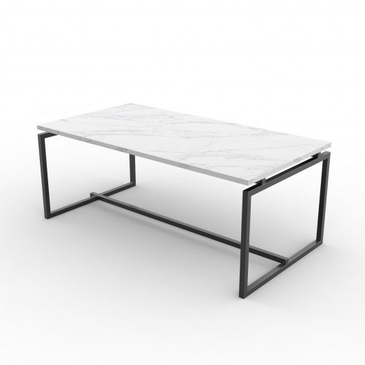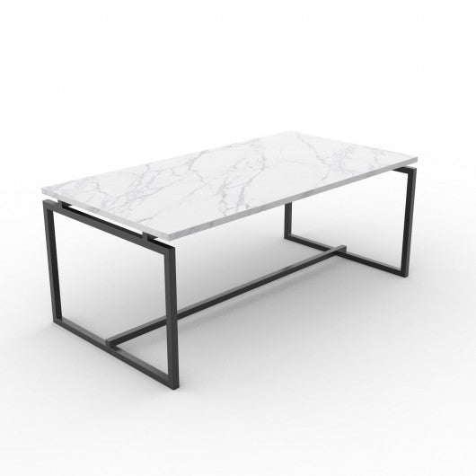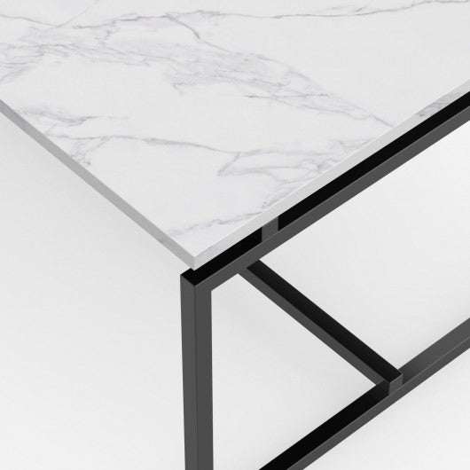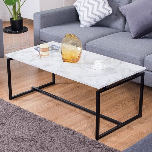 Accent Modern Coffee Tea Table for Living Room with Metal Frame-White