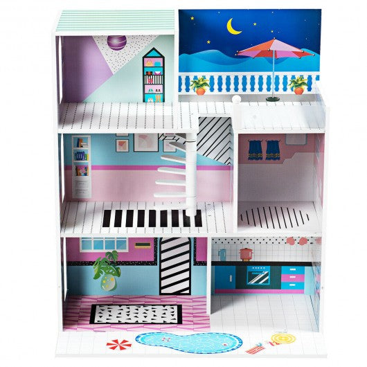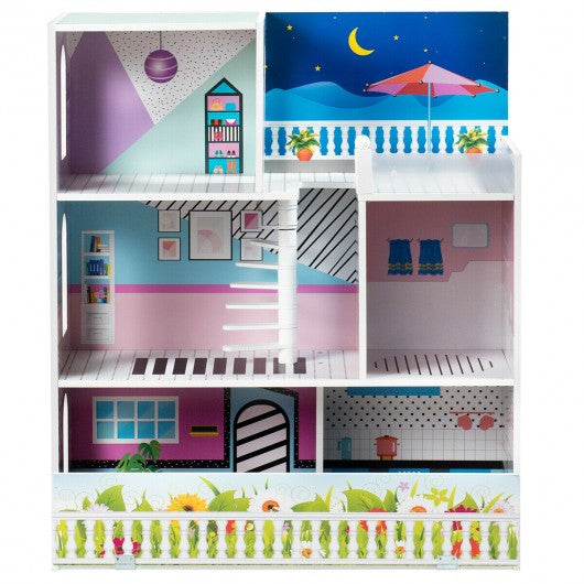 Made of high quality MDF boards this doll house can be used all year round. Are you still frustrated that you are too busy with work or housework to take care of your kids? This doll house is undoubtedly your ideal choice and will bring hours of fun to your children. Realistic scenes and spacious rooms allow children to put furniture and dolls inside for role-playing so as to fully stimulate their imagination. And the side windows allow kids to view dolls from a different point of view. Meets ASTM certification this doll house can bring a safer and more enjoyable play experience. If you are looking for doll house don't hesitate to buy it! Made of P2 MDF boards sturdy and durable ASTM certified for safe play With sweet apperance and spacious rooms Can freely place furniture and dolls for role playing Side windows allow kids to view dolls from a different point of view Conducive to stimulate imagination and develop cognition Suitable for children over 3 years Easy to assemble with detailed instructions