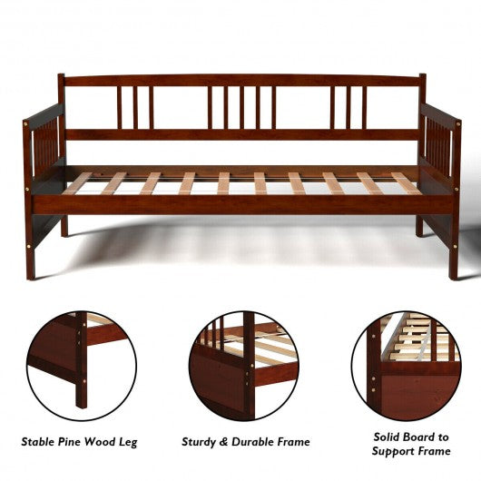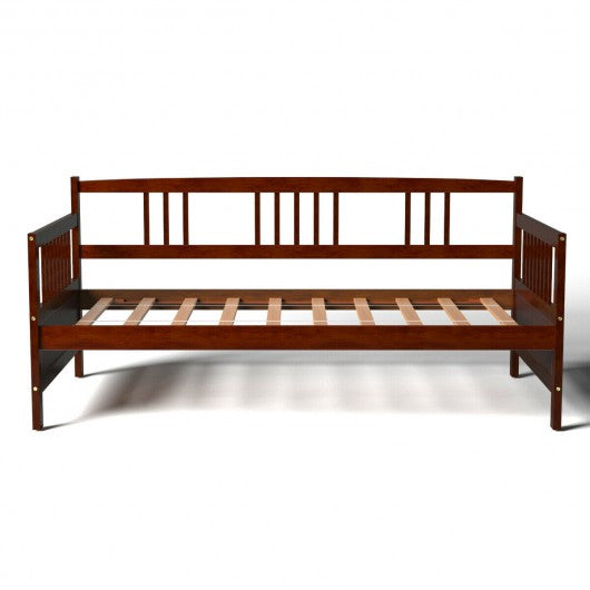 Twin Size Wooden Slats Daybed Bed with Rails-Chocolate