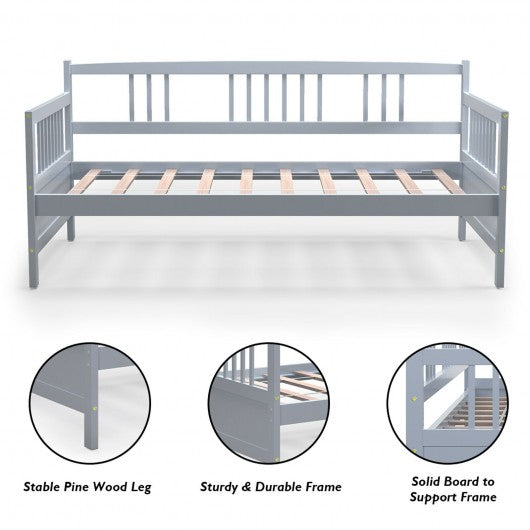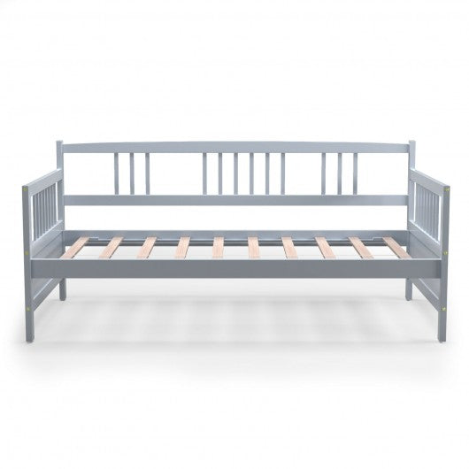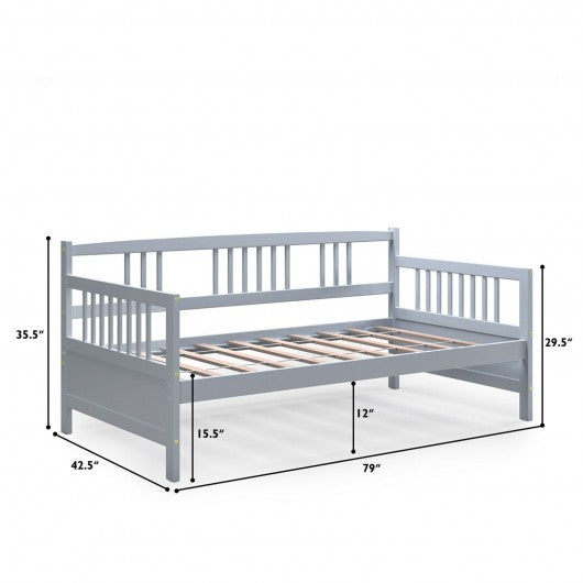 Twin Size Wooden Slats Daybed Bed with Rails-Gray