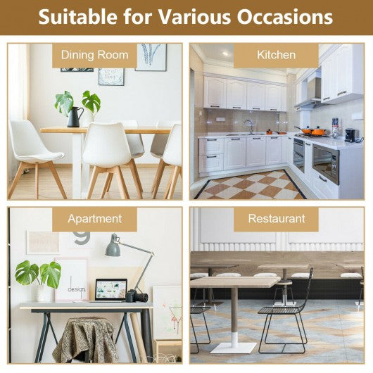 This 3-pieces table set is ideal for small apartment dining room kitchen living room coffee shop. Crafted from MDF board and solid rubber wood this dining set is sturdy and durable for long-time use. The 2 PU chairs are padded with thick resilience sponge providing you a comfortable seating experience. You can put the chair under the table when not in use. With its simple and modern style it is an attractive addition for home and apartment. So order now and enjoy the high-quality 2 chair dining set at your place! 3-piece dining set with a table and 2 chairs Constructed of high-quality MDF desktop solid rubber wood table leg and chairs Modern and stylish design matches perfectly with any decor Elastic cushioned seat to offer a comfortable sitting feeling Wooden table and smooth PU leather for easy cleaning Used as coffee table dining table and reception table set Perfect for dining room apartment restaurant etc Ergonomic backrest to effectively protect your waist and spine Max weight capacity of table can reach 176 lbs Max weight capacity of each chair can reach 265 lbs Easy to assemble under the guidance of the manual