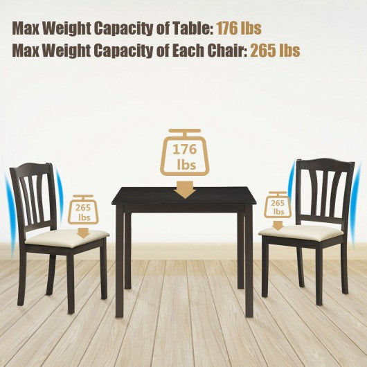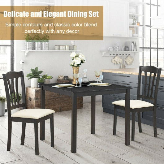 3 Pieces Dining Set Square Table with 2 Padded Wooden Chairs