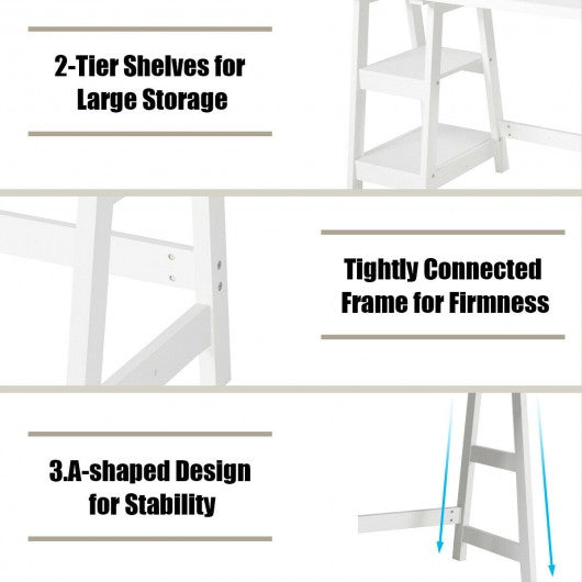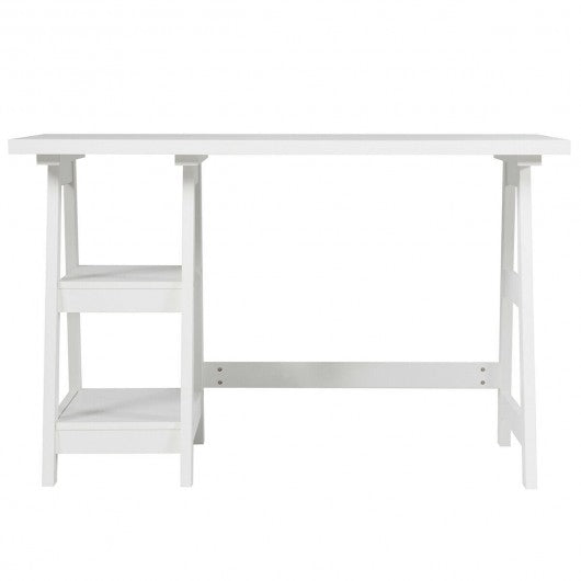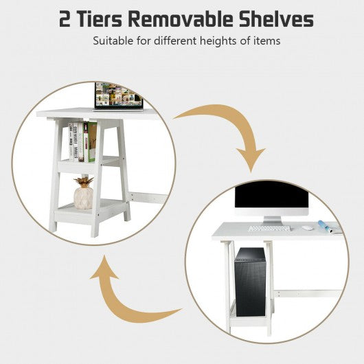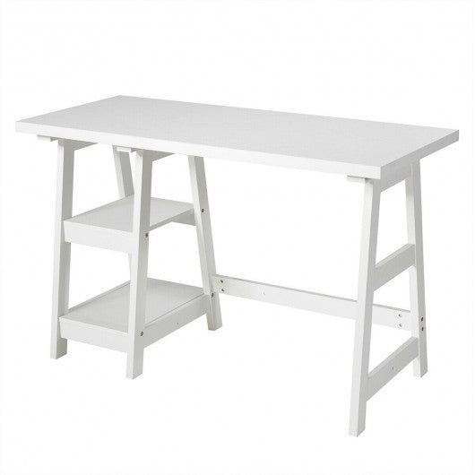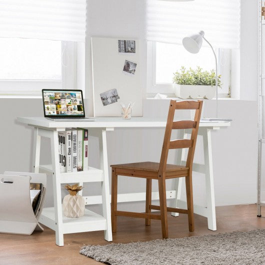 2 Tier Shelf Wooden Trestle Computer Table Writing Desk