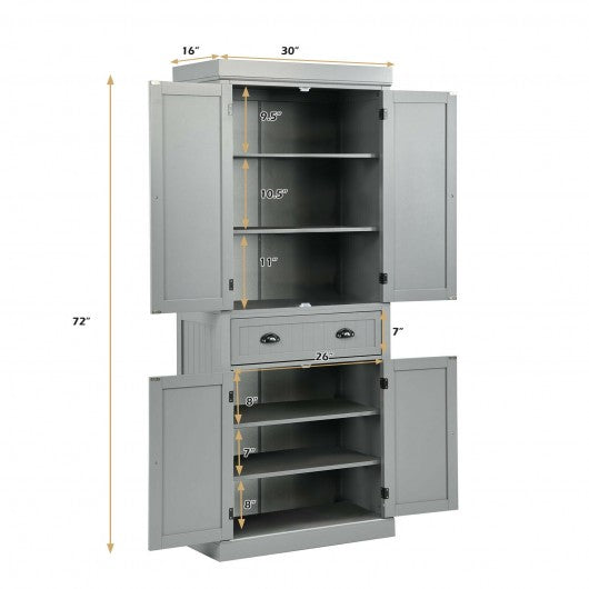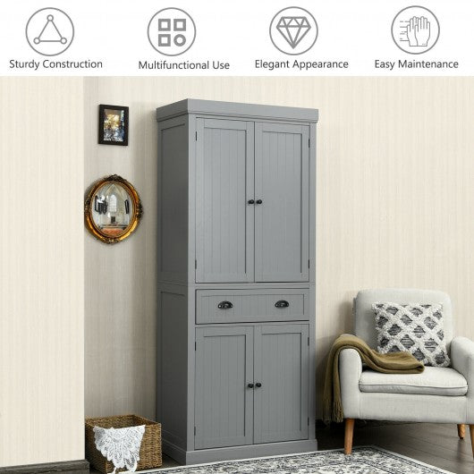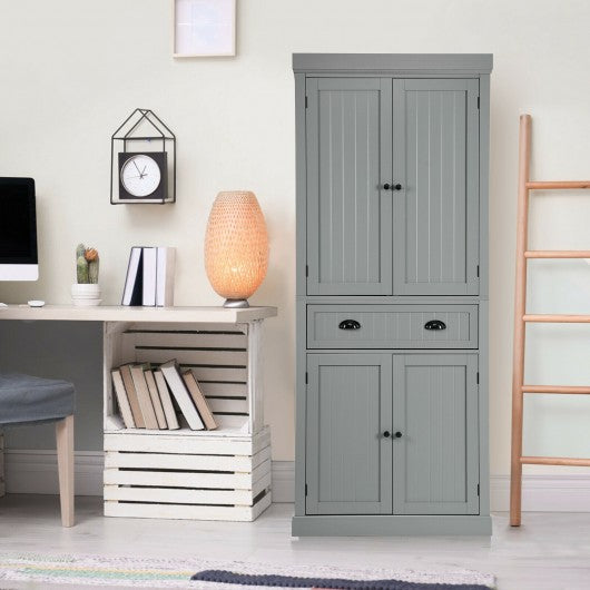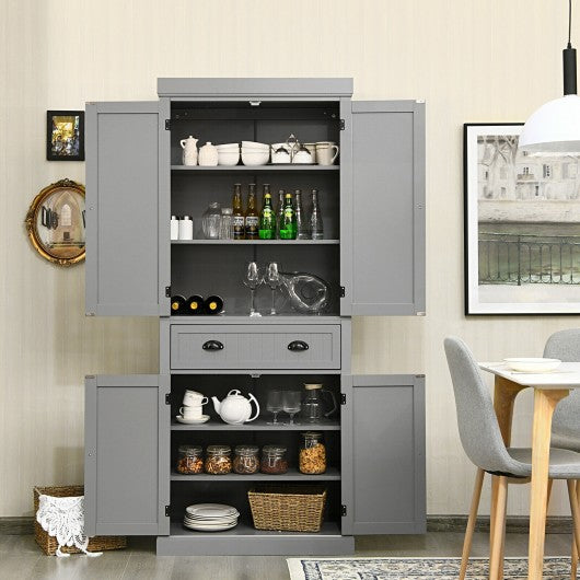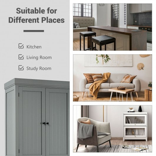 Cupboard Freestanding Kitchen Cabinet w/ Adjustable Shelves-Gray