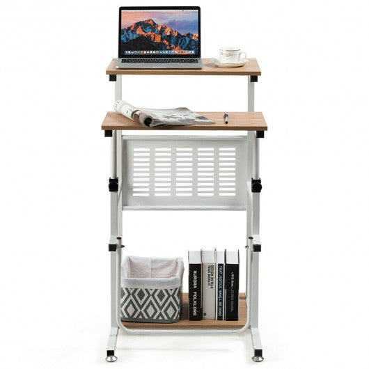 It is not only a computer desk but also a presentation table. Do not miss the perfect computer desk! The height of 38.5" will make you comfortable when do presentations. Powerful functions make it worth buying. There is a printer stand included. Whether you work study or play games use it. Its compact size will not occupy much space which makes it ideal for small units. With the foot pads of height adjustable function it prevents shaking of uneven floor and will always make your desktop level. All of the details make it a perfect workstation. If you are looking for desk don't hesitate to buy it! Adjustable desktop enables you to use both sitting and standing Ergonomic design of footrest to relieve fatigue after long time standing Equipped foot pads of height adjustable function to keep desk in level Bottom storage shelf to place computer mainframe and printer Perfect do presentation with the suitable height of 38.5" Compact stature makes it a perfect addition for small units Lightweight makes it easy to carry and transport Easy to assemble with simple structure and clear user guide