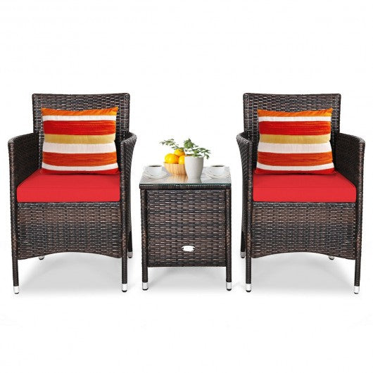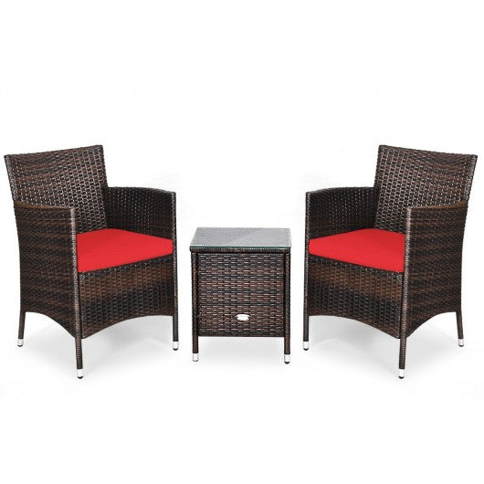 3 pcs Outdoor Rattan Wicker Furniture Set-Red