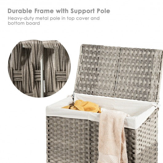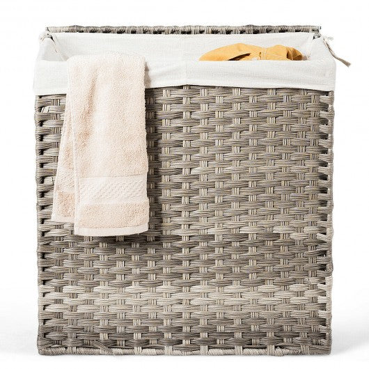 Laundry Hamper Hand-Woven Synthetic Rattan Laundry Basket-Gray