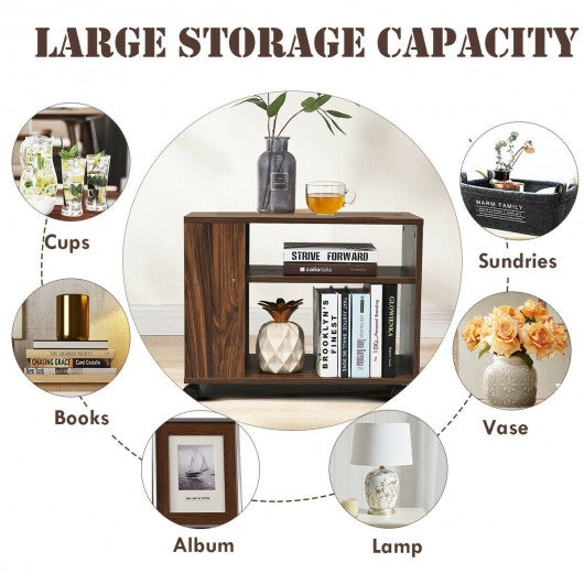 3-tier Side Table with Wheels & Large Storage Shelf