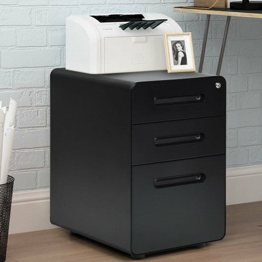3-Drawer Mobile File Cabinet with Anti-tilt Mechanism Legal-Black