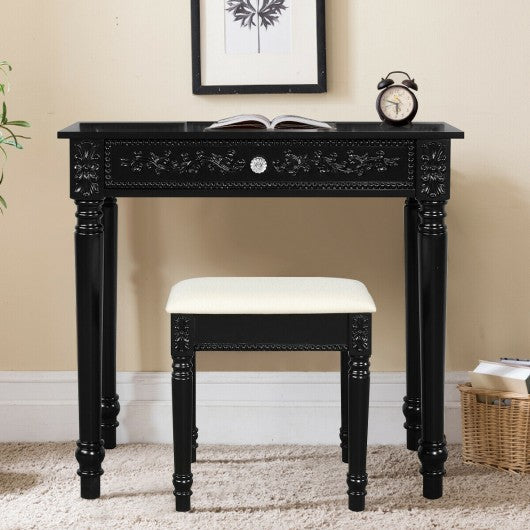 Vanity Dressing Makeup Table Set with Tri-Folding Mirror and Stool-Black