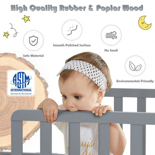Classic Kids Wood Bed with Guardrails-Gray