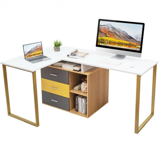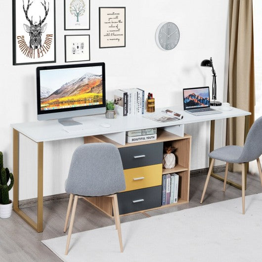 87" long desktop meets the different needs of 2 people or you can assemble it into a L-shaped desk to fit any corner in your room. Featuring spacious desktop 3 drawers and 2-tier shelves it offers ample storage space for computers printer books plant and more. What's more this double workstation is made of premium engineered board and metal frame which is very sturdy and durable. You can use it as a 2-person writing table office table as well as game desk. It is ideal for bedroom study room and office. Do you want to share your workspace with your partners side by side? This 2-person computer desk is a good choice for you to work with friends at the same time. If you are looking for this product don't hesitate to place an order! 2-person double computer desk or L-shape gaming table Made of P2 engineered wood and metal frame to ensure sturdiness and durability Large desktop with flexible working area to place computers plant and files 3 drawers and 2-tier open shelves to provide ample storage space Provides ample legroom for stretching your legs freely Max weight capacity can reach 250 lbs Modern and elegant style to integrate into any home d?cor Suitable for bedroom study office etc Smooth surface for easy cleaning Antiskid foot pad to prevent the floor from being scratched Easy to assemble under the detailed instruction