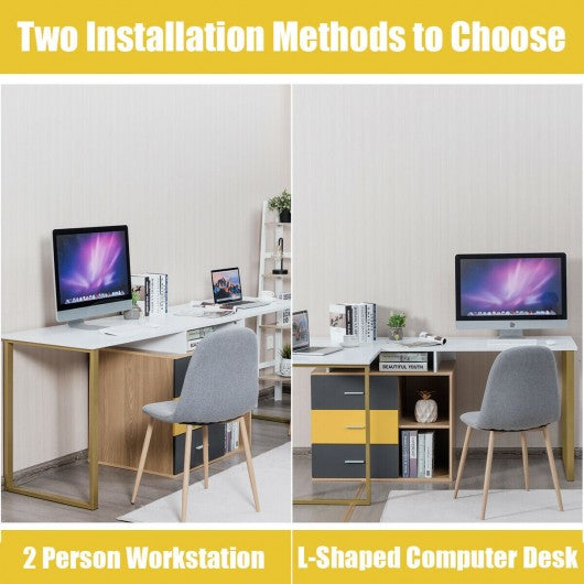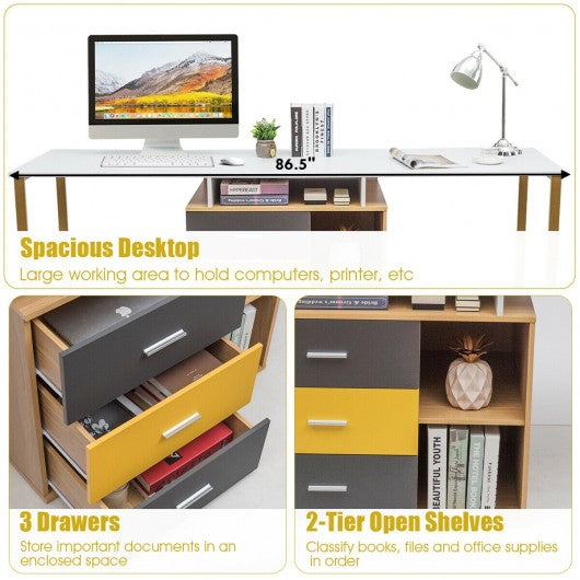 87" 2 Person Adjustable L-Shaped Computer Desk