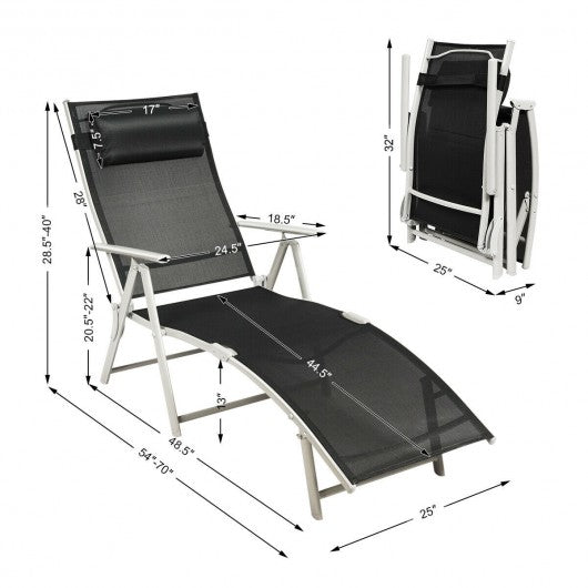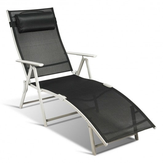Outdoor Lightweight Folding Chaise Lounge Chair-Black