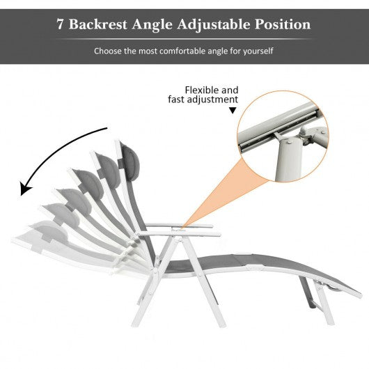 Outdoor Lightweight Folding Chaise Lounge Chair-Gray