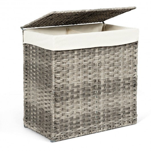 Meticulously crafted this beautiful hand-woven synthetic rattan laundry hamper with a large divided removable liner bag is an ideal choice for you to put away your dirty clothes and keep your home in perfect order. Made of stable iron frame and premium PE rattan this laundry basket ensures strong stability and can be used for a long time. Besides the waterproof synthetic rattan makes it an ideal companion for even damp bathrooms. The foldable design saves a lot of storage space and makes it easy to move. Besides for storing dirty clothes the basket can also be used to store kid's toys and other items. It's really versatile and will be a good choice for you. If you are looking for basket like that don't hesitate to buy it. Stable iron frame and tough PE rattan provide strong durability Foldable design for easy storage and space saving when not in use Divided inner space to place and store different clothes Removable liner bag makes it easy to move dirty clothes to the washer Waterproof laundry basket and easy to clean Perfect for bedroom laundry room balcony closet and bathroom Easy-to-hold handles lift-up lid and silica gel feet No assembly required