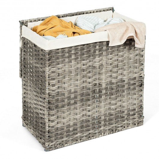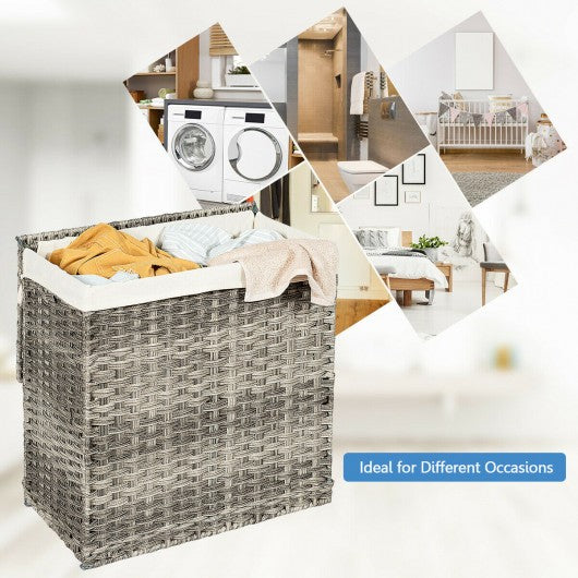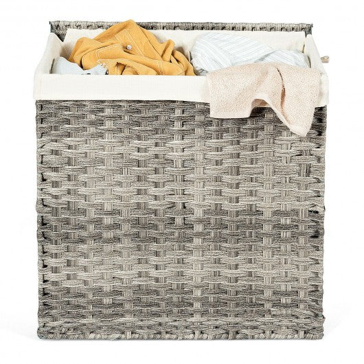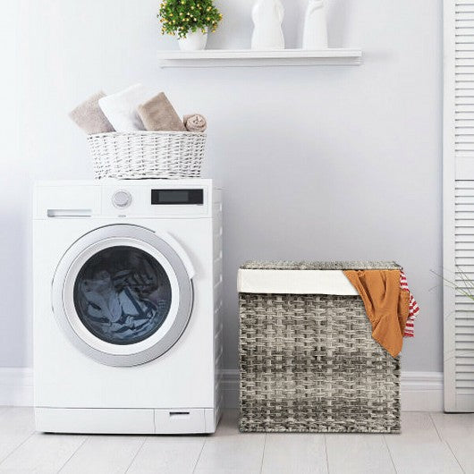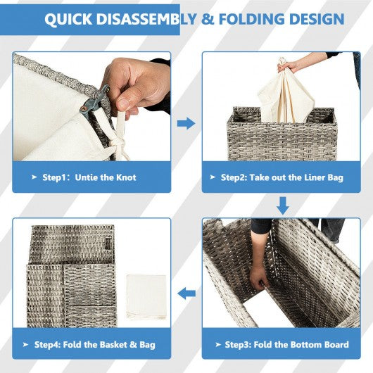 Hand-woven Foldable Rattan Laundry Basket-Gray