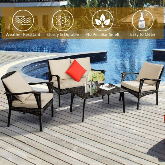 4PCS Patio Rattan Wicker Furniture Set Cushioned Sofa Couch