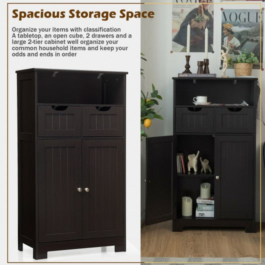 Bathroom Wooden Side Cabinet with 2 Drawers and 2 Doors-Coffee