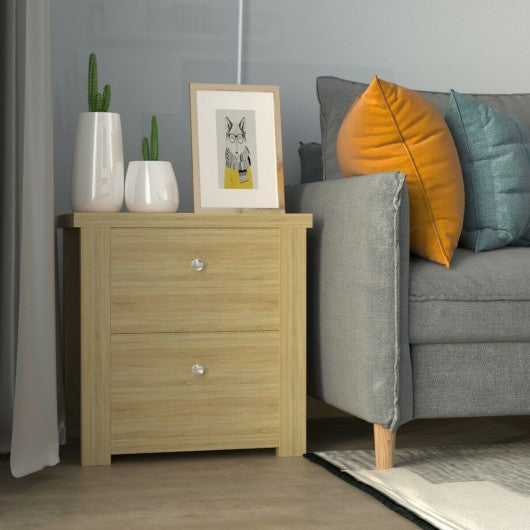 The 2 tiers modern bedside table has a large storage space and allows you to place items in categories. Are you looking for an elegant and practical bedside table for your bedroom? If so please look at our modern bedside table with 2 storage drawers.Made of Premium particle board and MDF it has a durable and stable structure for long term use. There are 2 large drawers which can help you to organize your clutter better. Also the spacious desktop can hold many items such as nightlight alarm clock books or some decorations. With the help of metal slide rails and round knob design the drawer is easy to pull out and push. It is worth mentioning that the anti-toppling strap and 4 anti-slip pads can give you a better safety experience. In addition this compact nightstand is fashionable and modern and can be matched with any of your furniture and decoration styles. You can use it as an end table bedside table in your living room or bedroom. If you are looking for such nightstand don't miss it! Made of premium particle board and MDF sturdy and durable Strong structure offers powerful support and stability Anti-toppling fitting for safe use 2 drawers and tabletop provides ample storage space Drawers with slide rail and metal knobs are easy to use Anti-slip pads prevent the floor from being scratched The smooth and flat surface is easy to clean Elegant and modern style adds charm to your room Compact and versatile design suitable for many occasions Easy to assemble detailed instructions will be provided